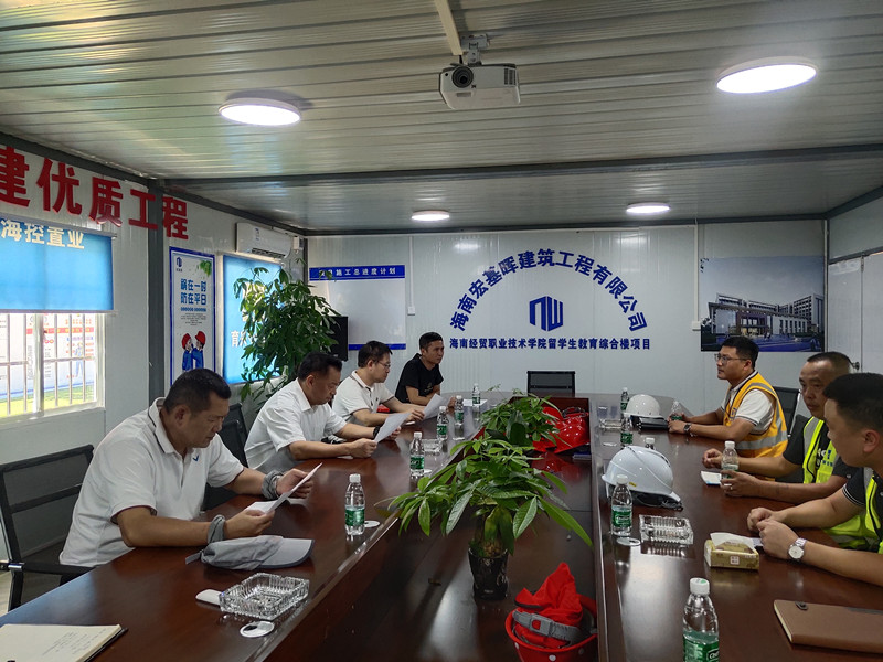 在项目现场指挥部,黄景贵院长听取了代管单位负责人对项目进度的详细介绍,了解了工程进度情况和建设过程中存在的困难。他结合项目进展与学校发展实际情况,提出留学生教育综合楼项目作为学院最重要的新建工程,必须在充分保证建设质量的前提下提升效率赶进度,争取在计划约定时间内交付使用。陈修焕副院长就项目的进度把控与产值核算等问题与代管单位交换了意见,希望建设各方高效合作,稳步有序推进项目建设工作。