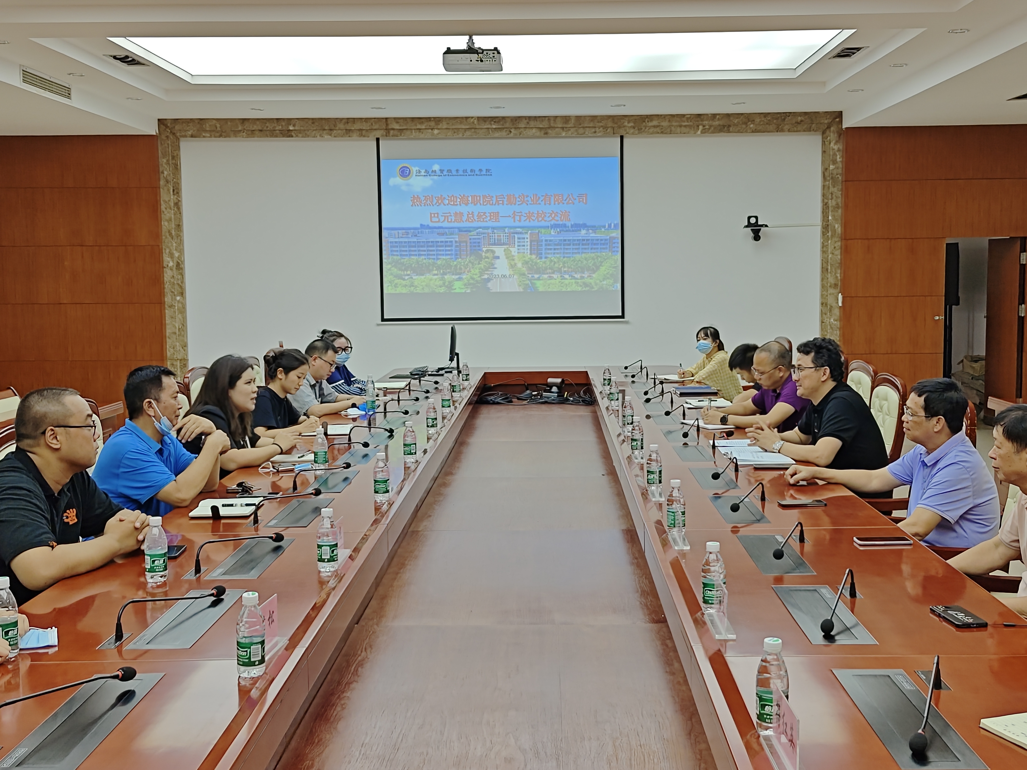 6月7日下午,海南高职院后勤实业有限公司总经理巴元慧一行8人对我院后勤服务管理及校园基本建设等工作进行访问交流,学院党委委员、副院长陈修焕,后勤基建处副处长吴育强及相关管理人员参加交流。