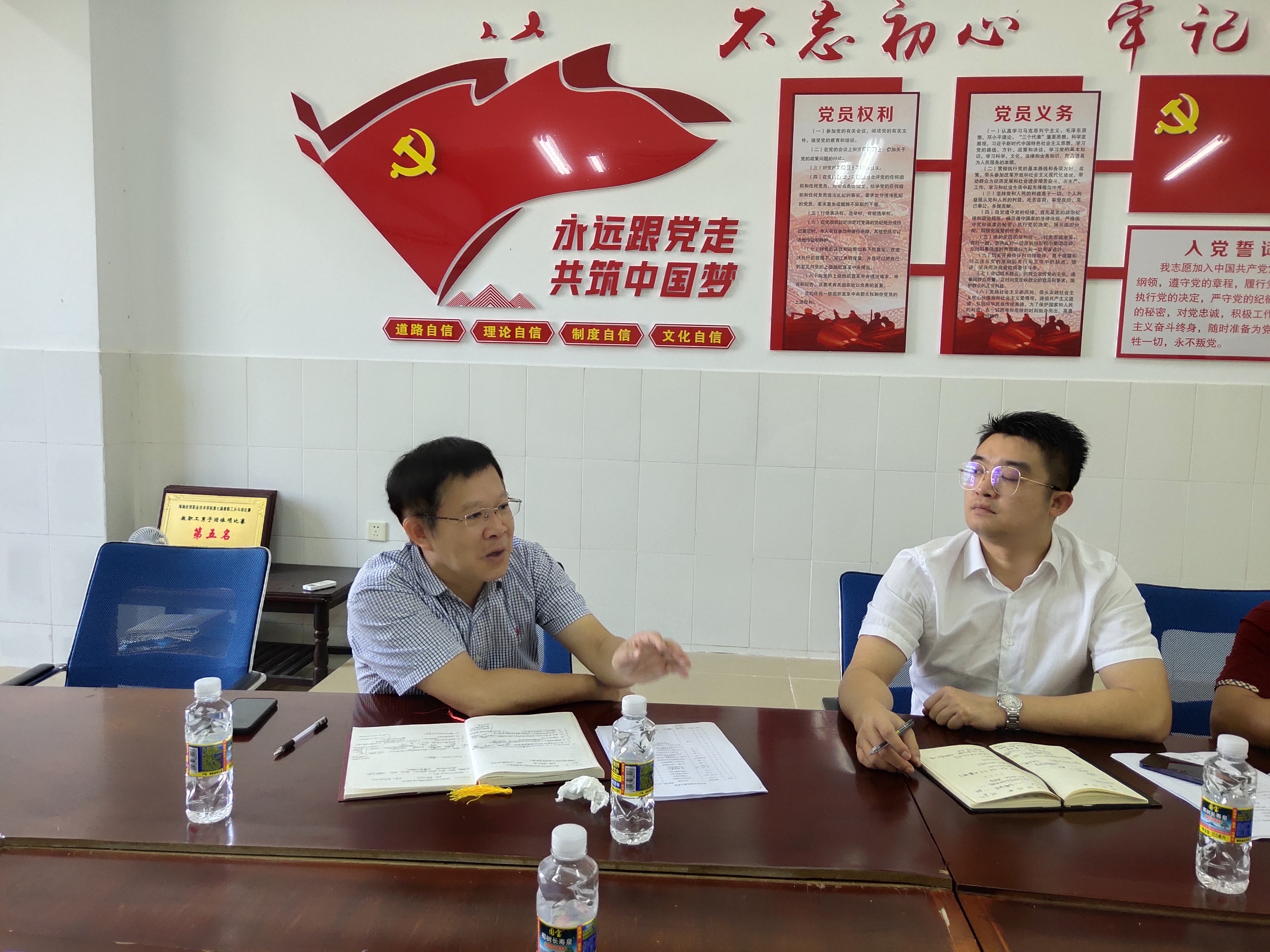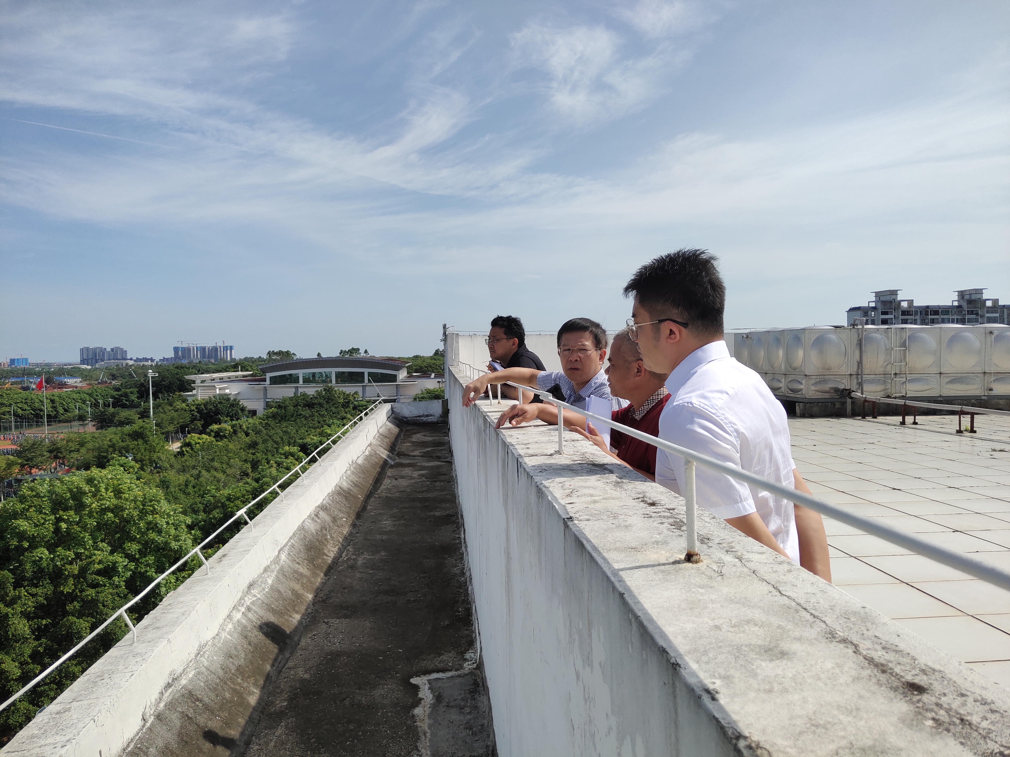 综合实训大楼各使用单位就使用过程中存在的问题进行汇报,包括透风、漏水、掉皮、积水、坏门等11项问题。海南第一建筑工程有限公司相关负责人对建筑现存问题进行分析,并对维保工作进行表态。