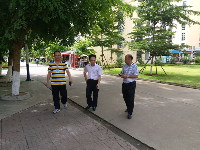6月14日上午,海口市“双创”工作督查组莅临我校,专题检查与指导“创文”工作。副院长陈修焕陪同创文督查组巡查校园。