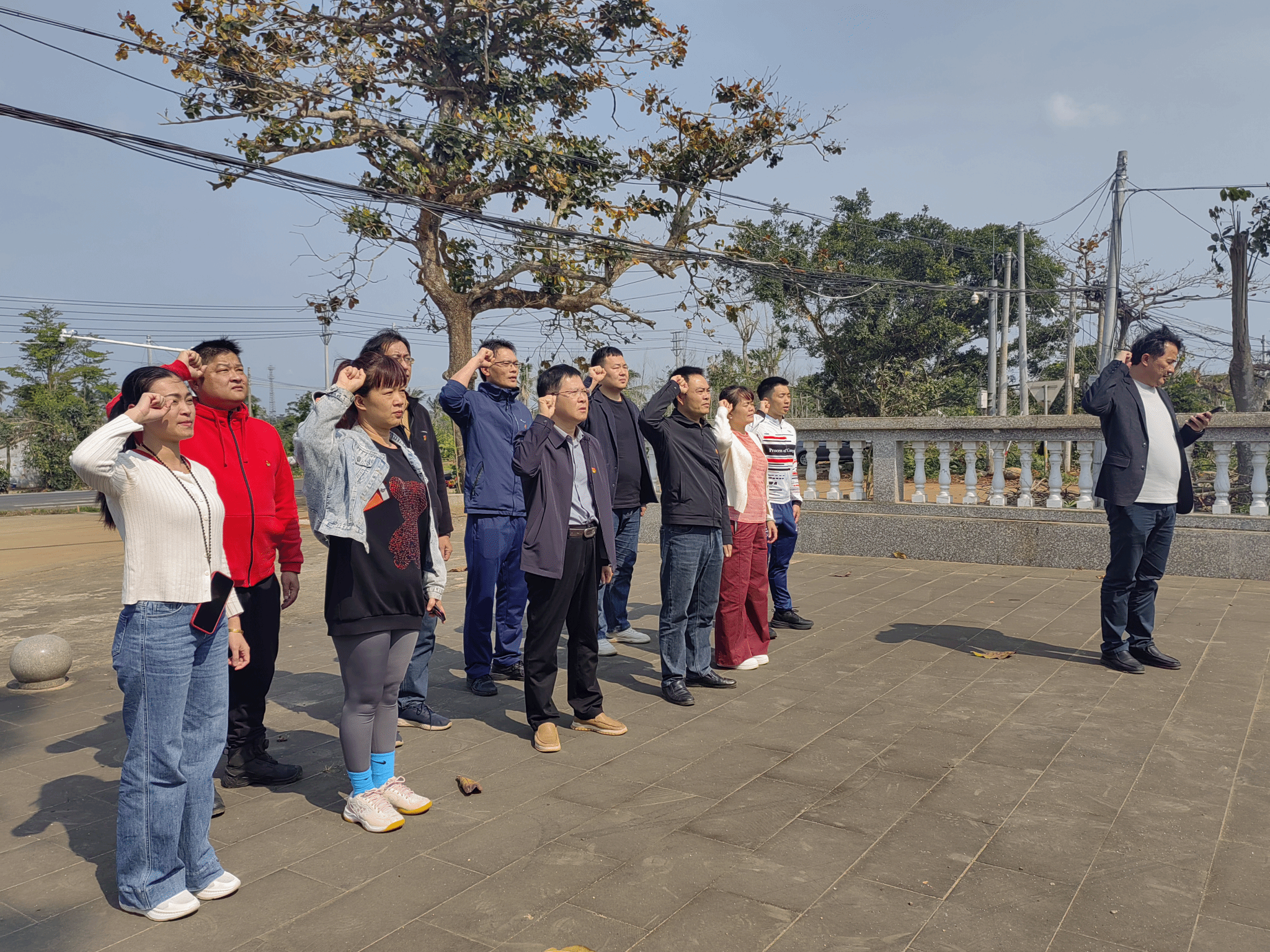 在三江革命烈士纪念碑前,大家瞻仰庄严肃穆的革命烈士纪念碑,学习抗日战争精神、革命精神,缅怀革命先烈,传承红色精神,增强党员干部的责任感和使命感。支部书记吴育强向大家介绍抗日战争、解放战争时期罗牛山地区的革命历史,追忆先辈们的丰功伟绩,并带领全体党员在纪念碑下重温入党誓词,再次向党作出庄严承诺,坚定理想信念和初心使命。